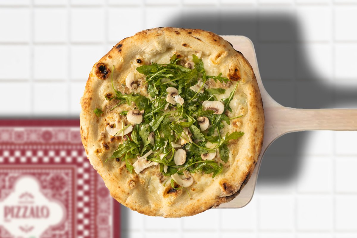 Με gorgonzola, stracchino, κρέμα τρούφας, ρόκα και μανιτάρια