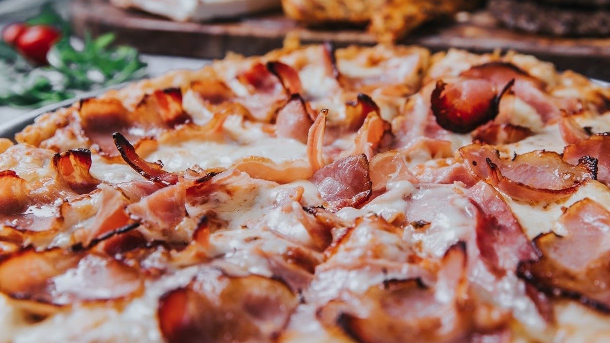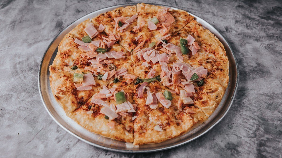 Με σάλτσα ντομάτας, mix τυριών, φιλέτο κοτόπουλο ψητό, μπέικον, κρεμμύδι, πράσινη πιπεριά και BBQ sauce