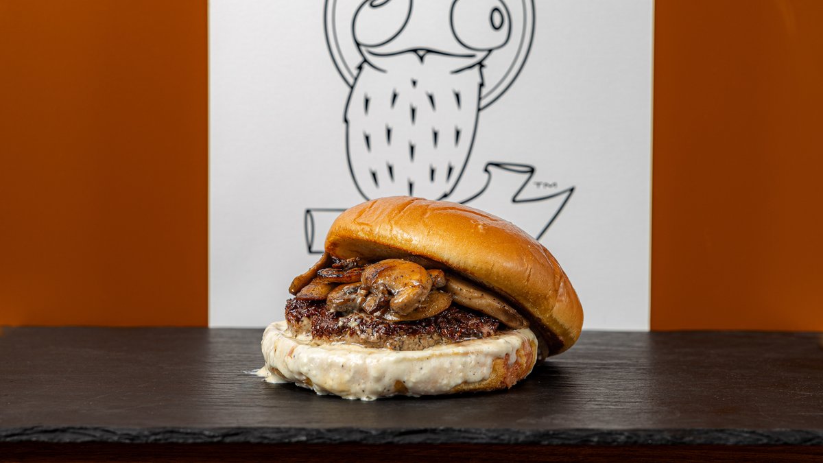 Μπιφτέκι, blue cheese mayo, μανιτάρια σωτέ