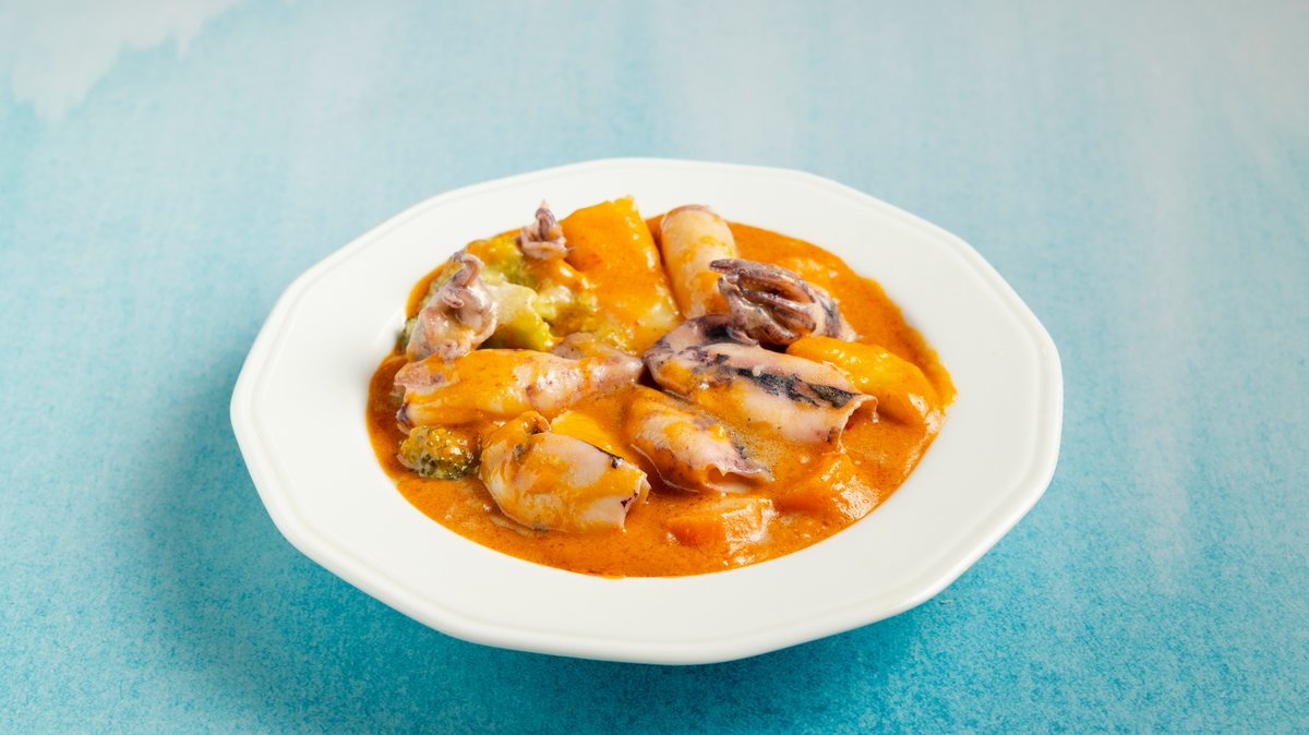 Bisque καραβίδας, γαρίδες καθαρισμένες,σάλτσα τομάτας και κρέμα γάλακτος.