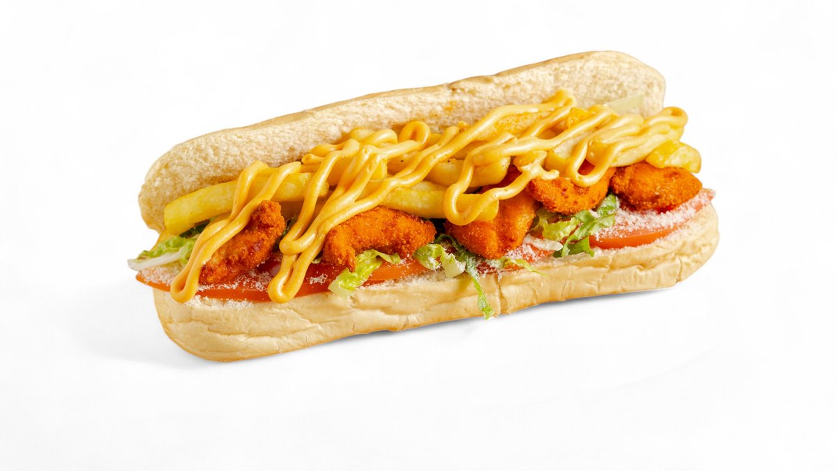Με μπιφτέκι κοτόπουλο, gouda, ντομάτα, μαρούλι και σως Πρωτονοστιμιές. Συνοδεύεται από πατάτες τηγανητές