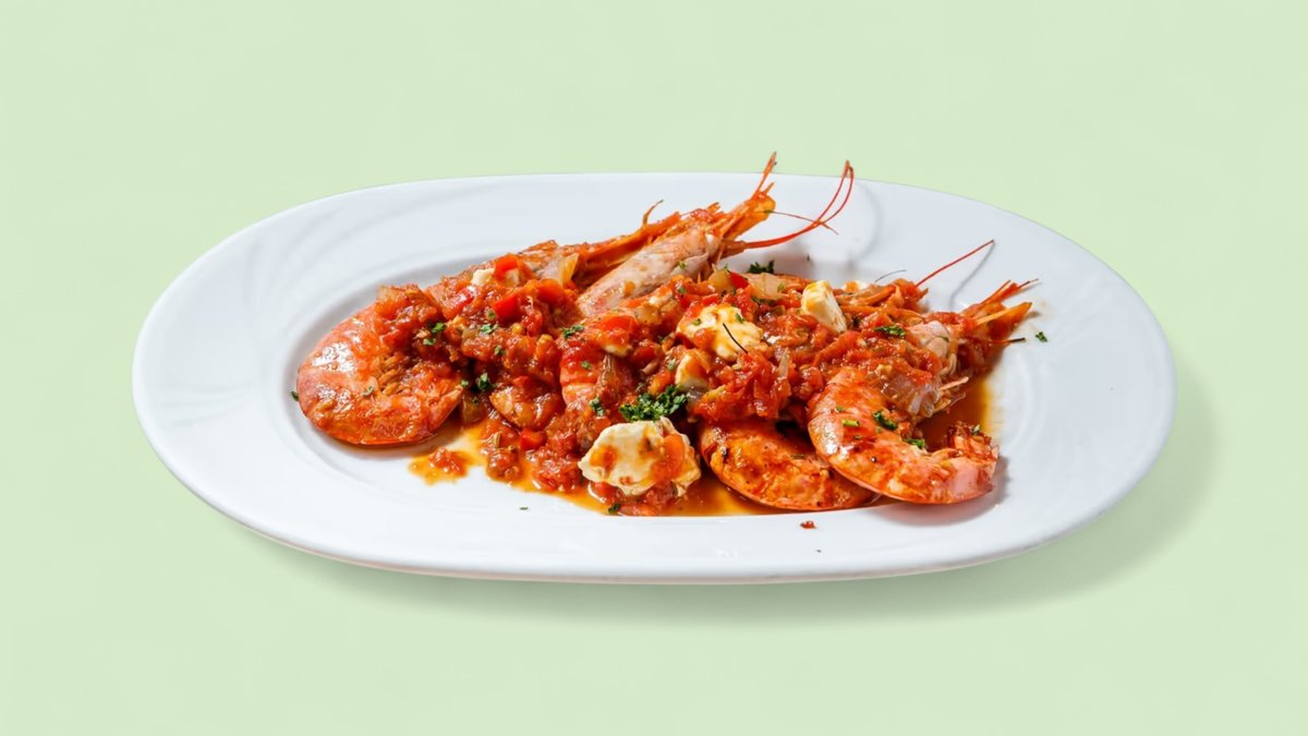 4 τεμάχια γαριδες νο1 με κοκκινη σαλτσα και φέτα