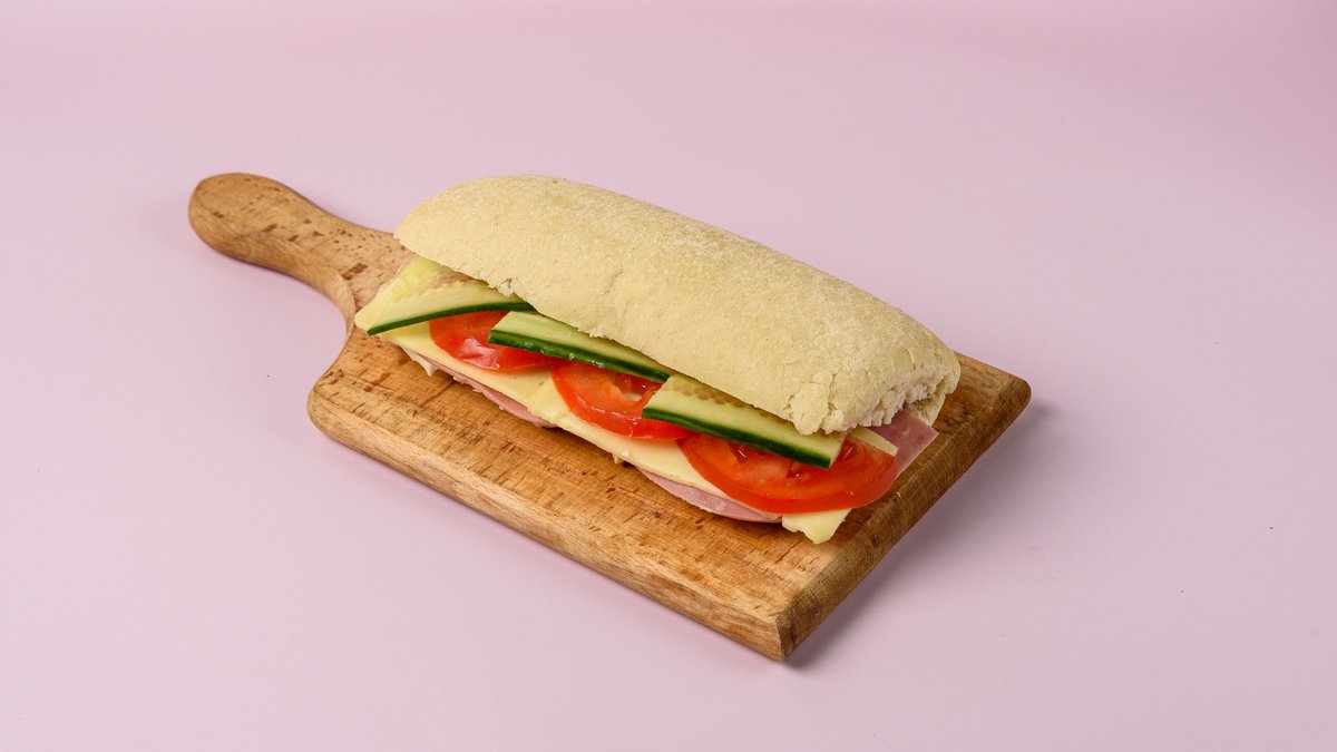 Ciabatta Λευκή με Φυτικό Ζαμπόν Φυτική Μαγιονέζα Ντομάτα Αγγούρι