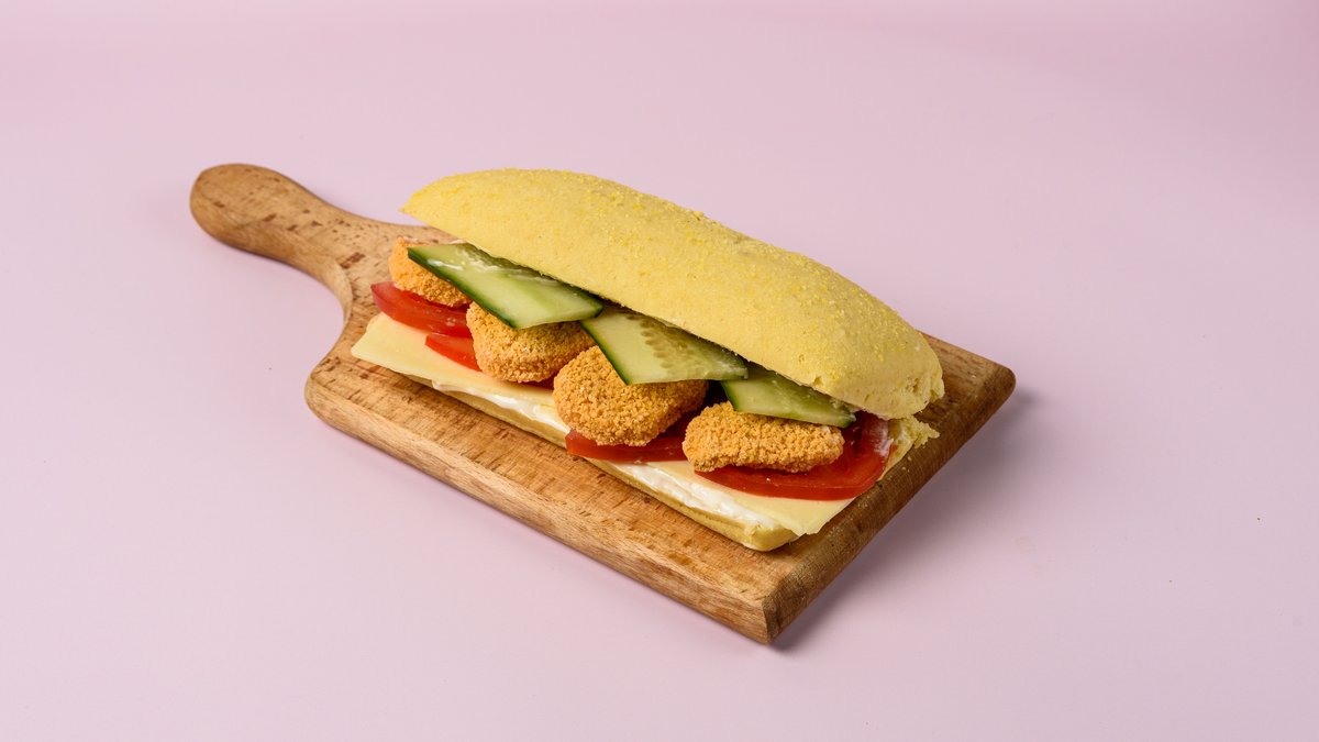 Ciabatta Λευκή με Κοτομπουκιές Τυρί Μαγιονέζα Ντομάτα Αγγουρι