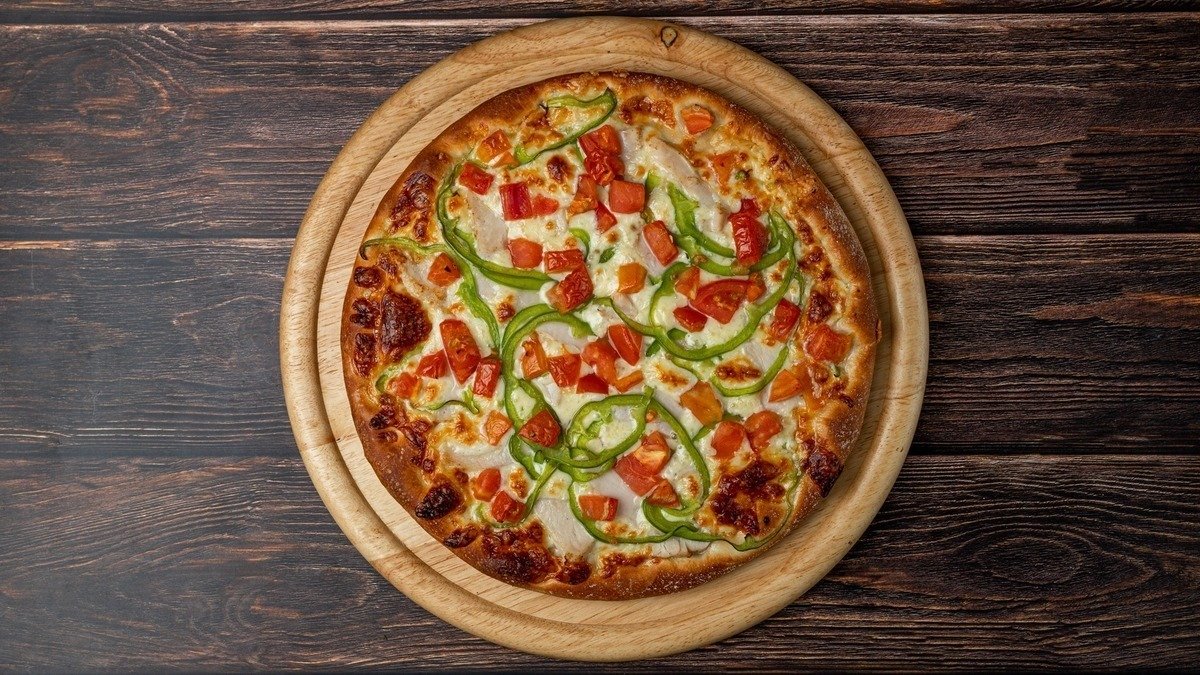 Με κρέμα γάλακτος, μοτσαρέλα, φιλέτο κοτόπουλο, πιπεριά πράσινη και φρέσκια ντομάτα