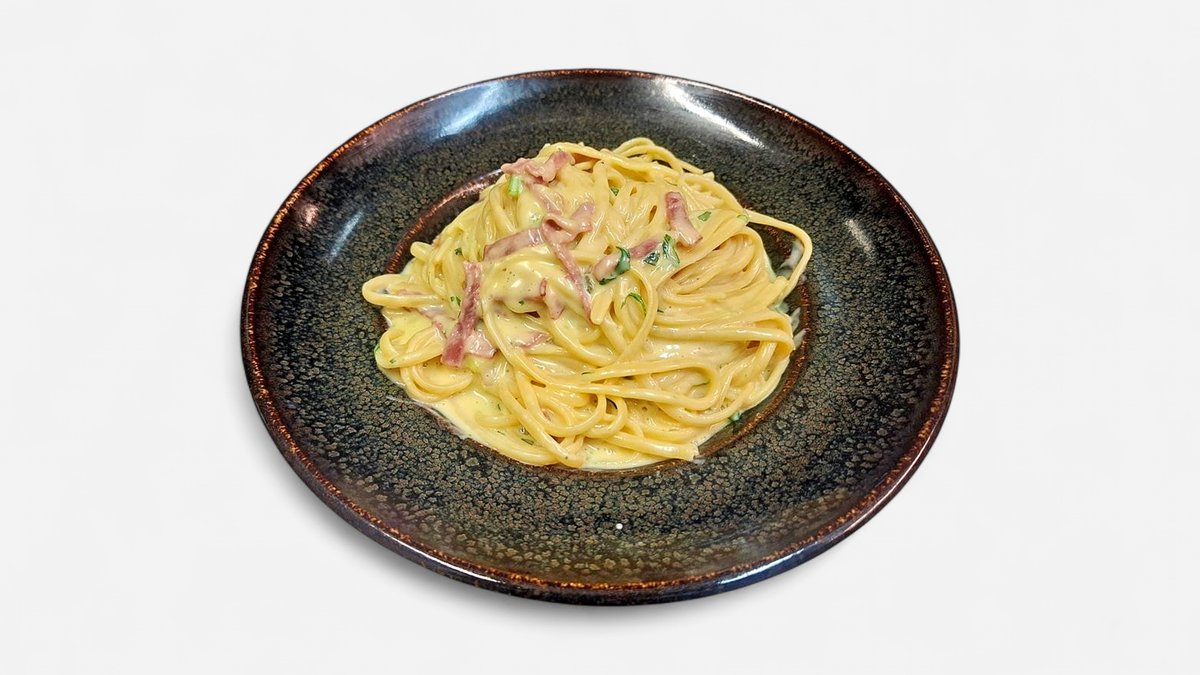 Με καπνιστό προβολόνε, ζαμπόν, μπέικον, ντομάτα & iceberg. Συνοδεύεται από πατάτες τηγανητές (λεπτοκομμένες)
