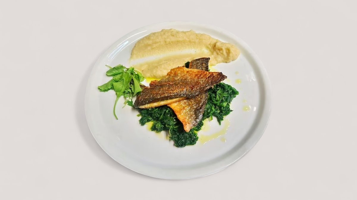 Συνοδεύεται από πουρέ γλυκοπατάτας & σάλτσα λεμόνι