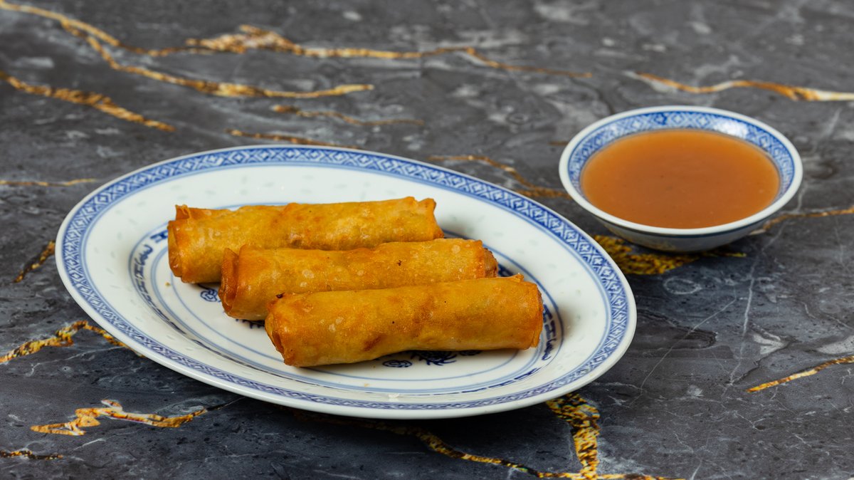 Με τρυφερό χοιρινό, ομελέτα, λαχανικά (πιπεριά, καρότο, κινέζικο λάχανο, μανιτάρια και κρεμμύδι), hoisin sauce και λεπτές κρέπες