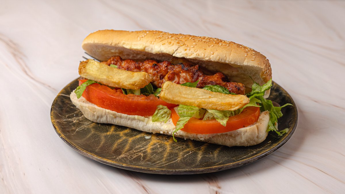 Διπλό κοτόπουλο, πατάτα, ντομάτα, μαρούλι, σως