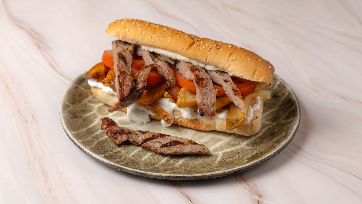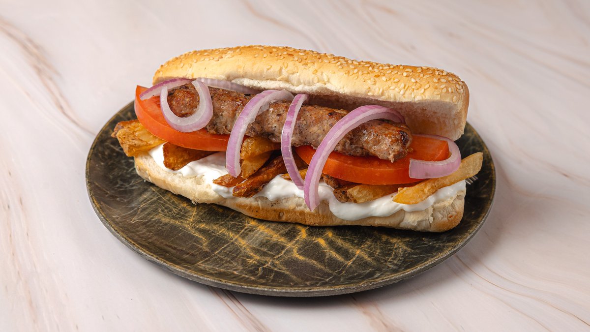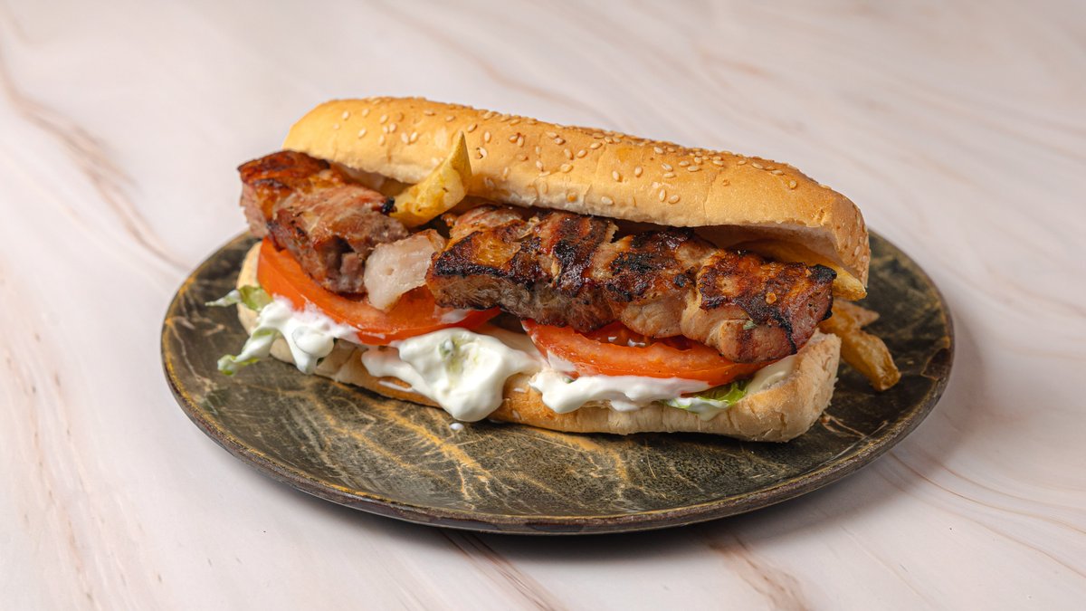 Διπλή πανσέτα, πατάτα, ντομάτα, κρεμμύδι, τζατζίκι