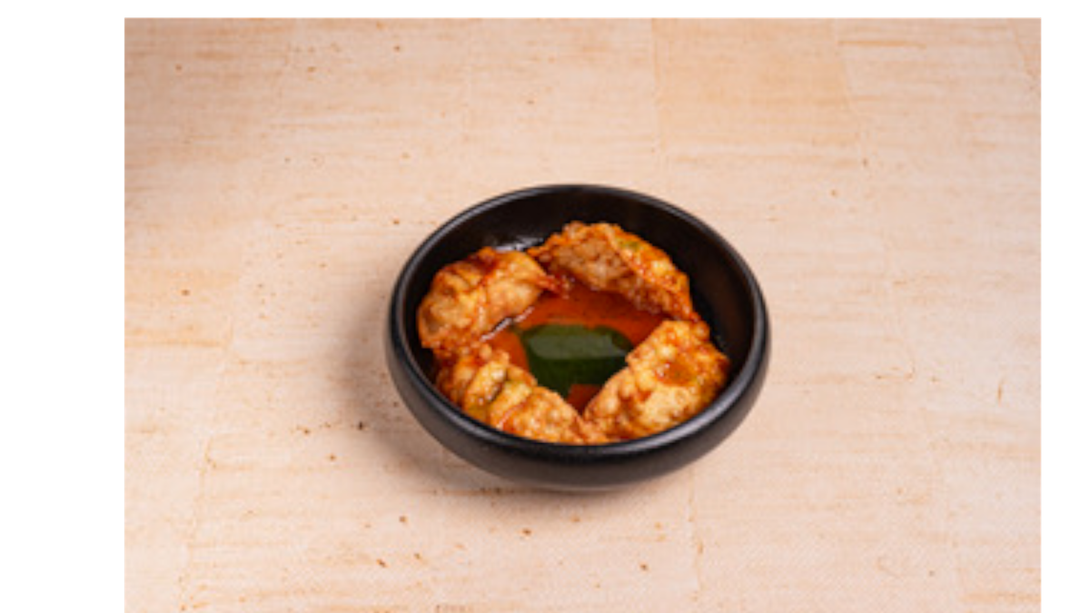Τηγανητή γαρίδα*, καψαλισμένη spicy vegan mayo και σχοινόπρασο