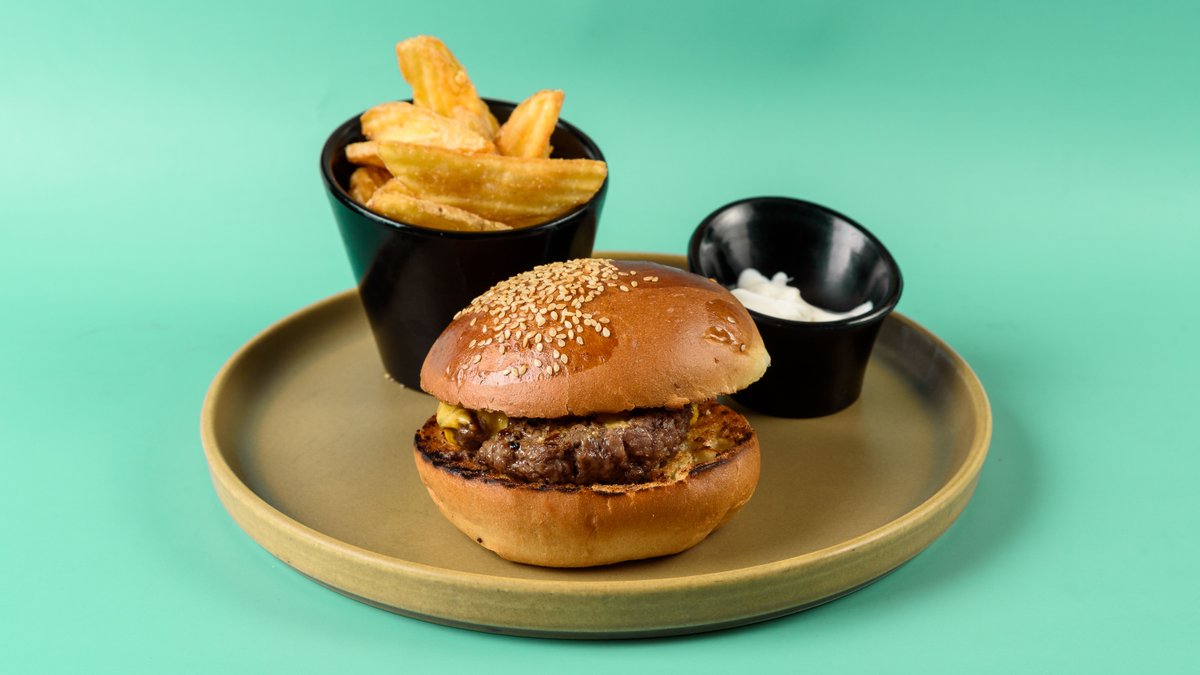Με μπιφτέκι από μοσχαρίσιο κιμά, cheddar, iceberg, ψητό κρεμμύδι, ντομάτα, spicy mayo και jalapeno pepper