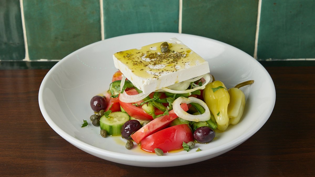 Ντομάτα, αγγούρι, πιπεριά πράσινη, κρεμμύδι, ελιές, κάπαρη, έξτρα παρθένο ελαιόλαδο