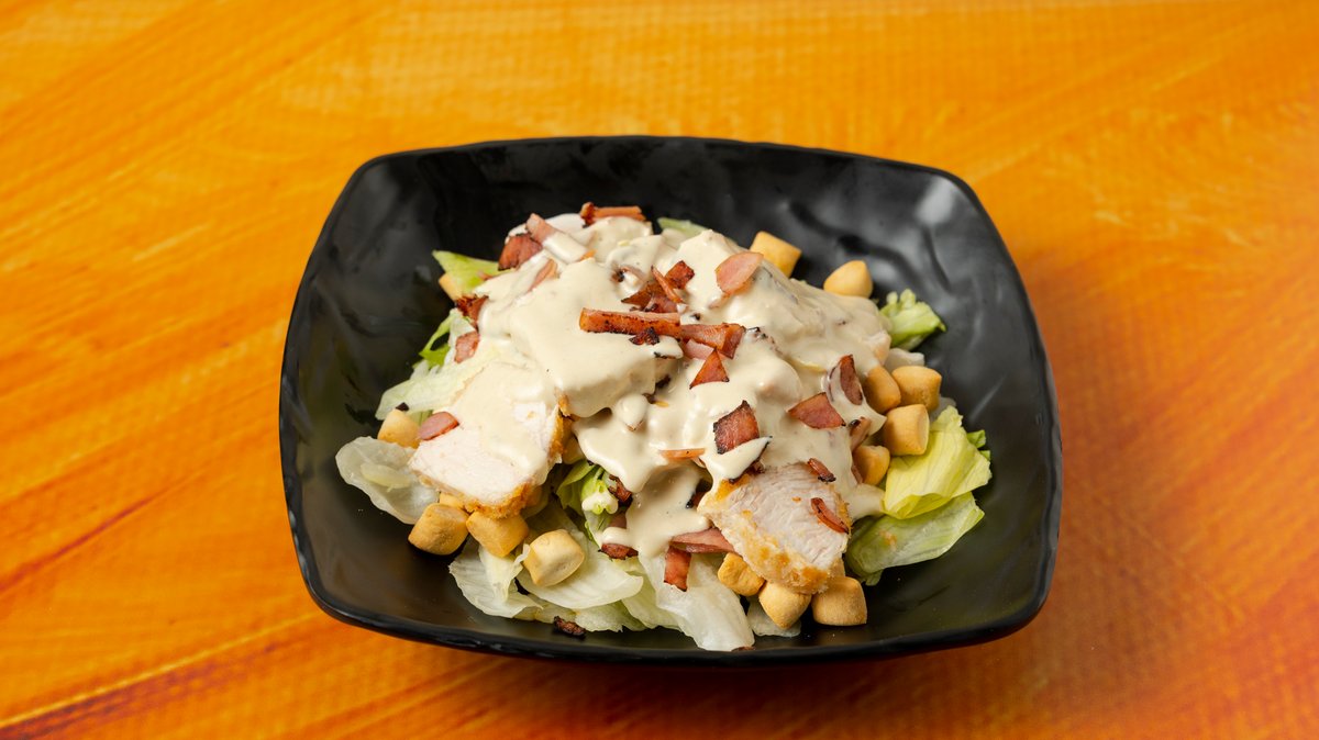 Με iceberg, κοτόπουλο, παρμεζάνα, κρουτόν, bacon, sauce Caesar