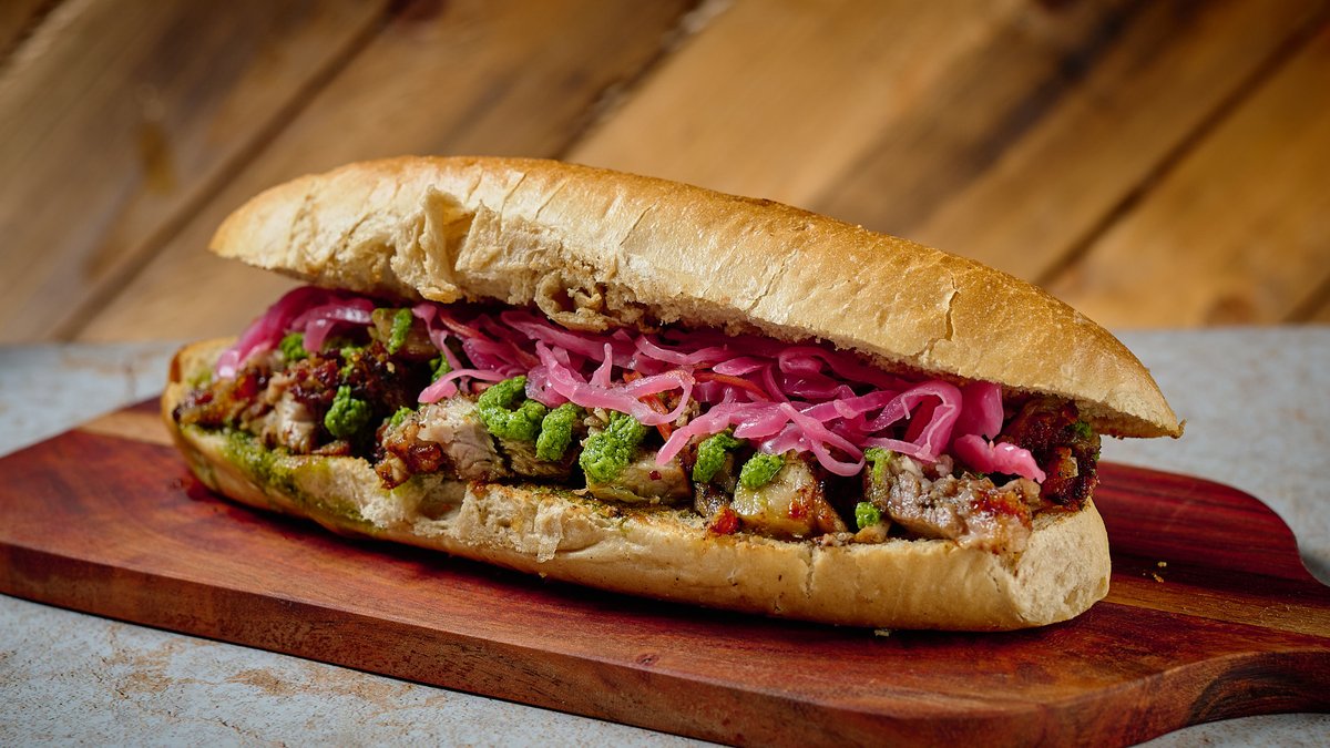 Με ψητή γουρουνοπούλα, χειροποίητη chimichurri sauce και πίκλα (λάχανο, καρότο και κρεμμύδι)