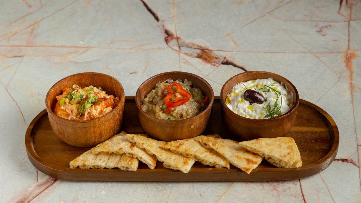 Με τυροκαυτερή, τζατζίκι, μελιτζανοσαλάτα και πίτα