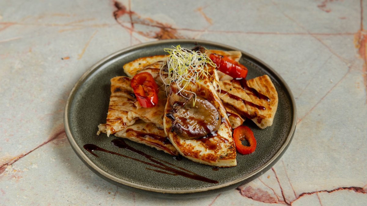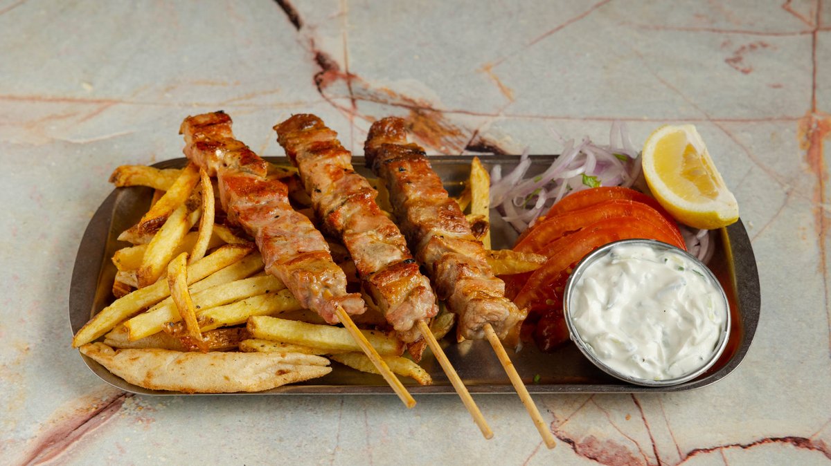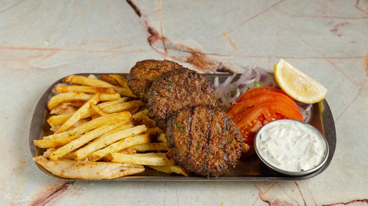 Συνοδεύεται από αφράτες πίτες, ντομάτα, κρεμμύδι και σάλτσα της επιλογής σου