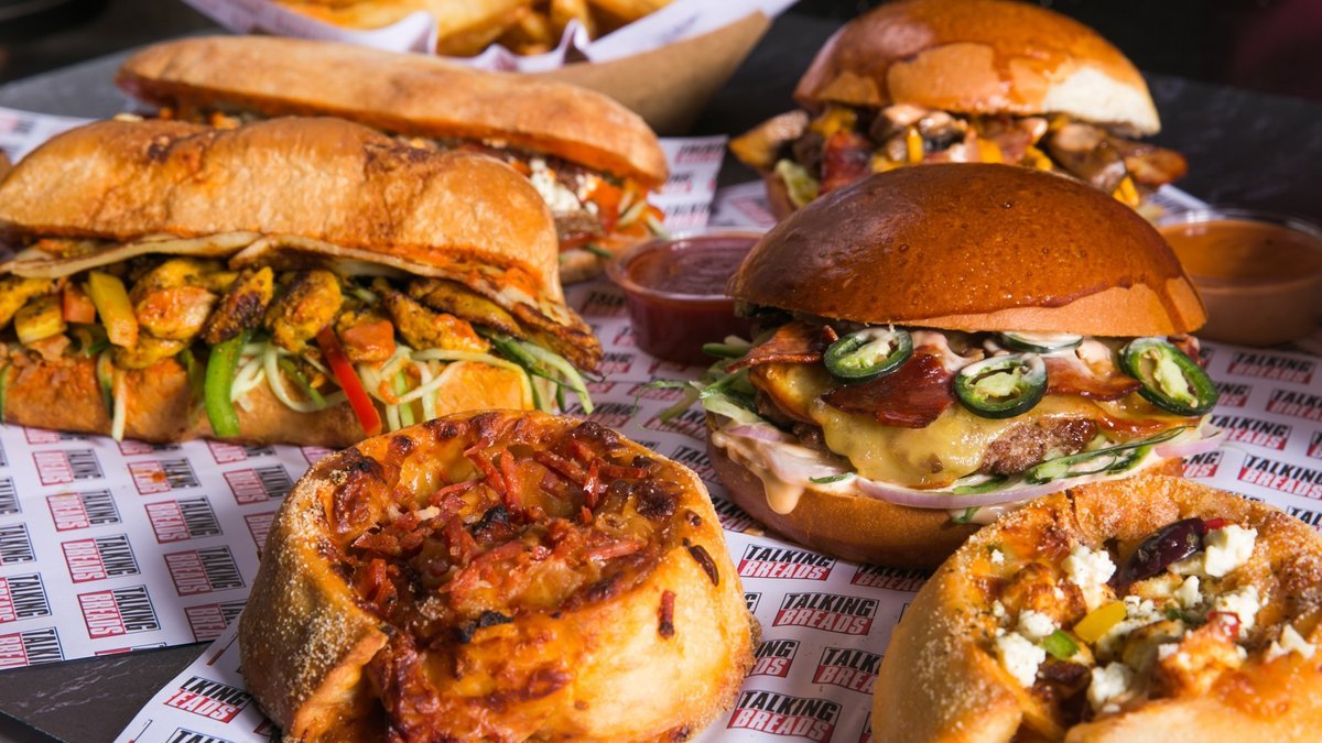 Με χειροποίητο ψωμάκι μπριός, μοσχαρίσιο μπιφτέκι, διπλό τσένταρ, μανιτάρια, μπέικον, καραμελωμένο κρεμμύδι, iceberg και σως talking bread