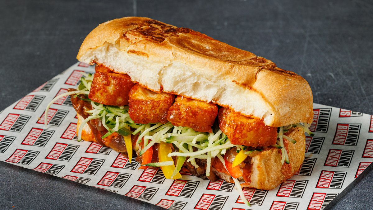 Με χειροποίητο ψωμάκι μπριός, διπλό μοσχαρίσιο μπιφτέκι, διπλό τσένταρ, iceberg, πίκλες και σως talking breads
