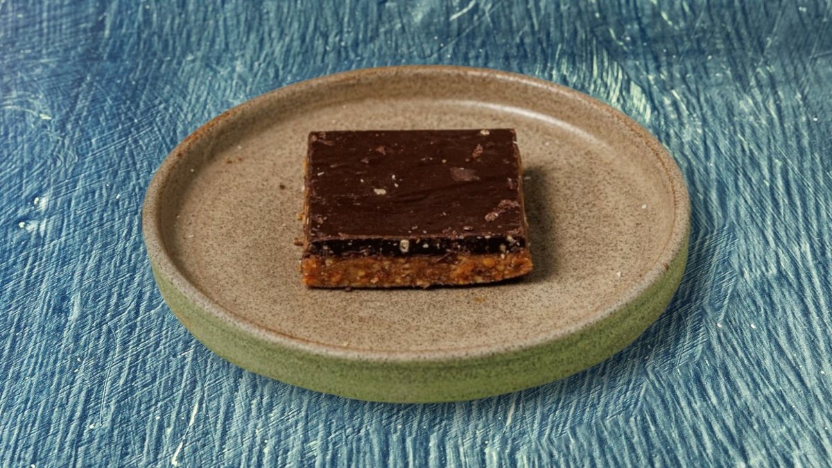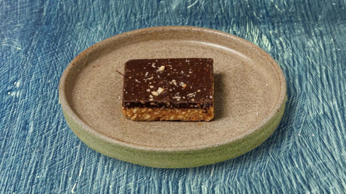 Με βάση αμυγδαλοβούτυρο, μέλι, αλεύρι καρύδας και επικάλυψη μαύρη σοκολάτα