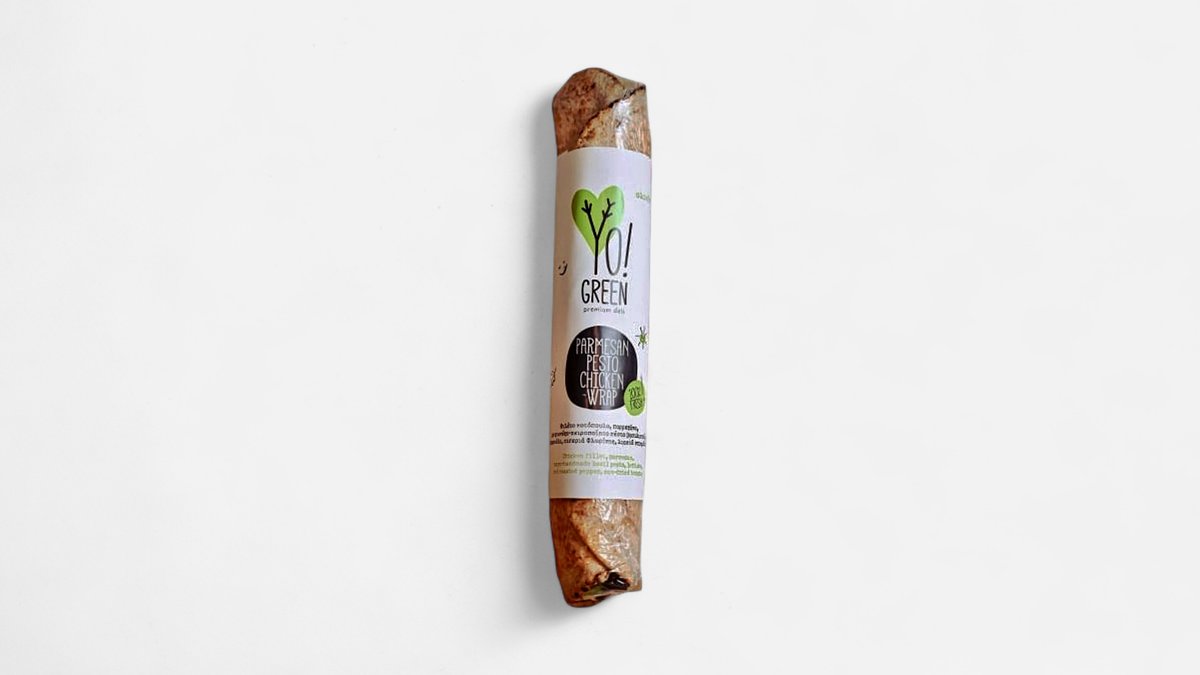 Φιλέτο κοτόπουλο, παρμεζάνα, μαγιονέζα - χειροποίητο πέστο βασιλικού, μαρούλι, πιπεριά Φλωρίνης, λιαστή ντομάτα (ολικής)