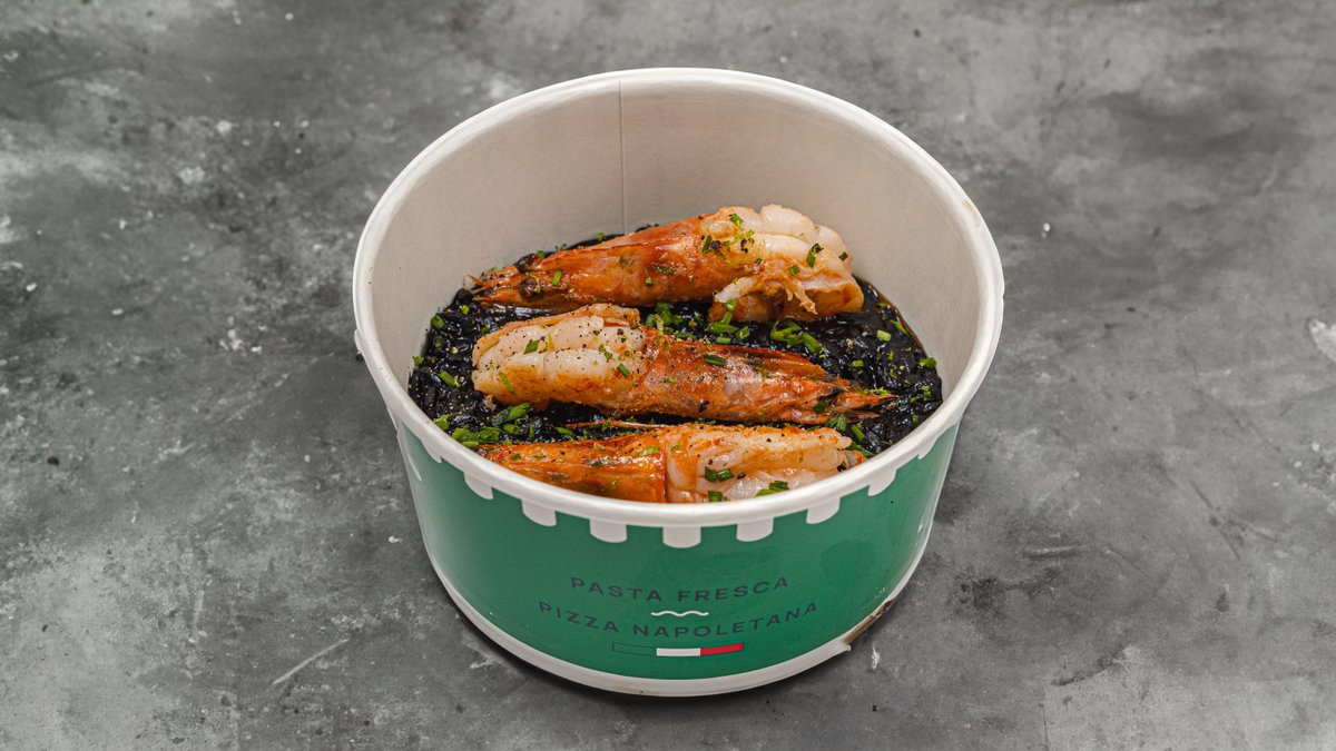 Ριζότο γαρίδας με μελάνι σουπιάς, αρωματισμένο με λάιμ