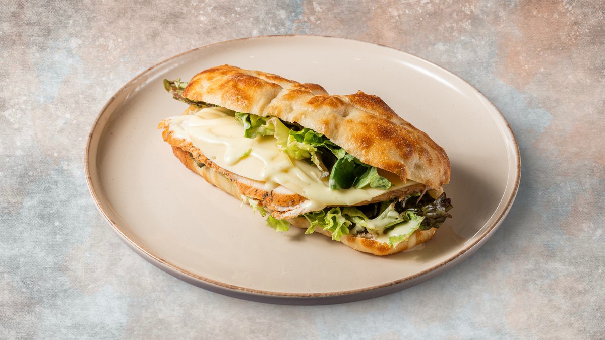 Με ζουμερή ταλιάτα από στήθος κοτόπουλο ψημένο με μπαχαρικά, γκρατιναρισμένη με καπνιστή γραβιέρα, αρωματική mayo μαύρης τρούφας και εκλεκτά πράσινα λαχανικά