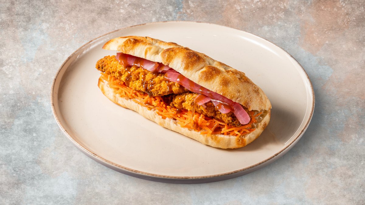 Με κοτόπουλο φιλέτο σε τραγανή κρούστα, γλυκόξινο κρεμμύδι, καρότο, spooners asian sauce, μαγιονέζα και mix πράσινης σαλάτας