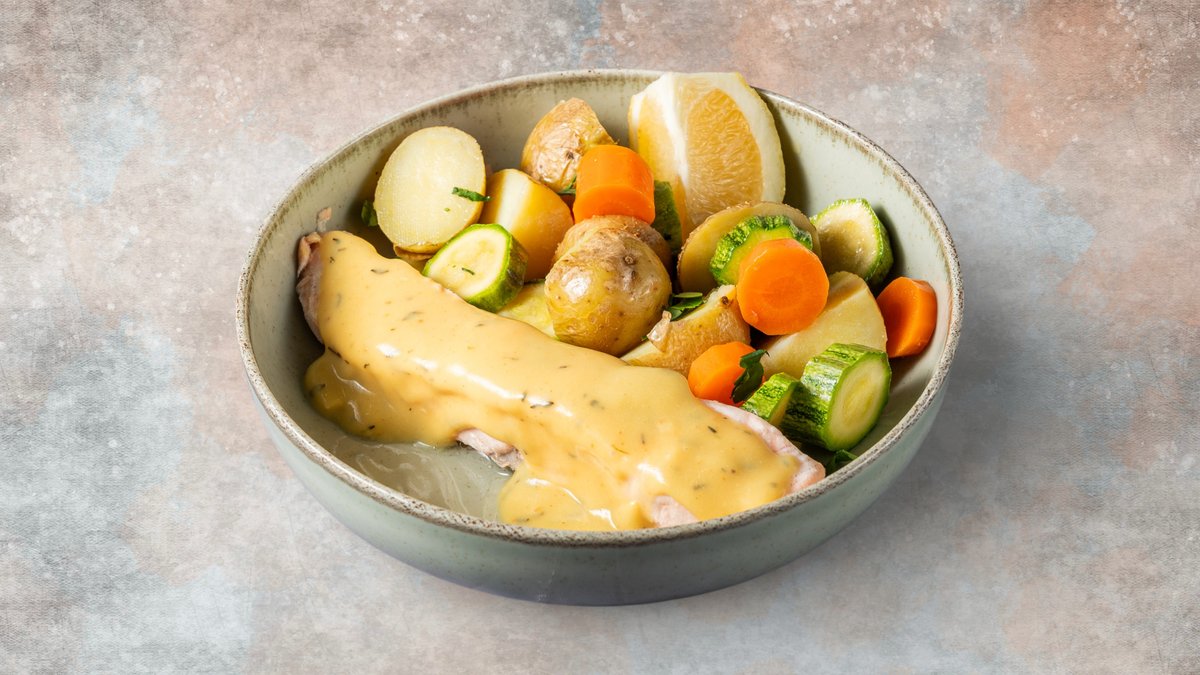 Με σως κρασιού και λαχανικά ατμού