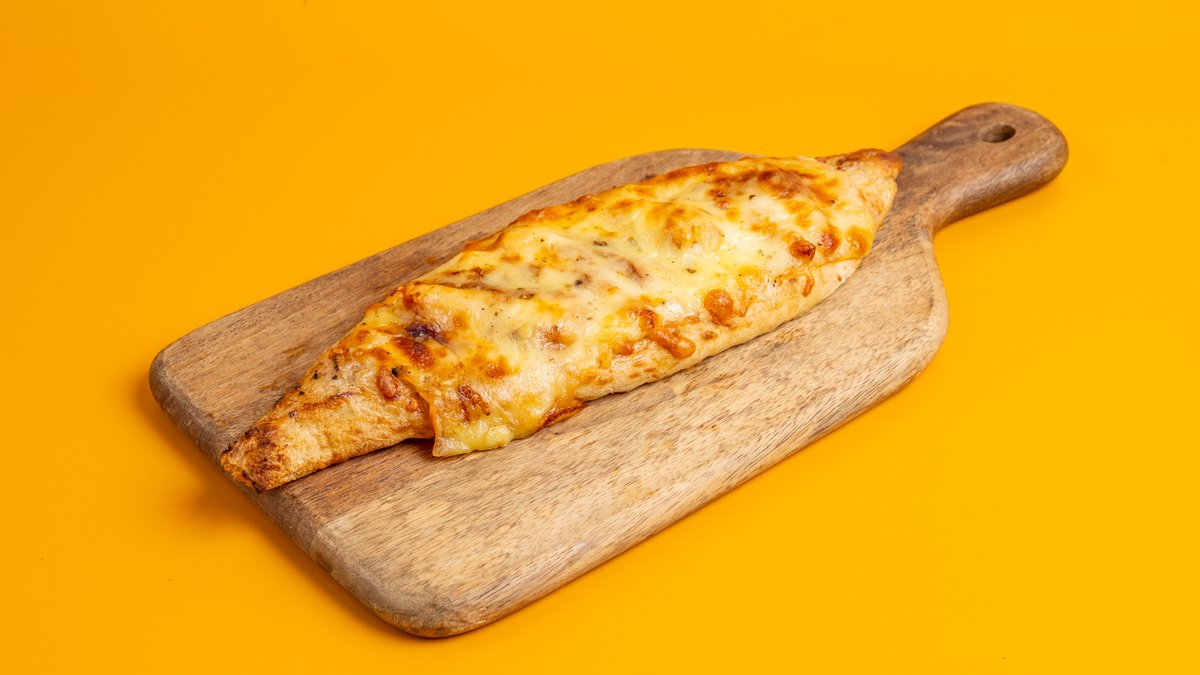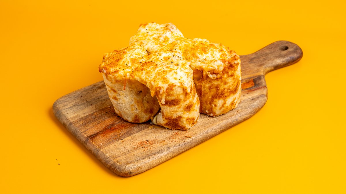 Vegetarian. Ψωμί villagio με κεφτεδάκια vegan, mix τυριών (mozzarella, regato και emmental), φρέκια mozzarella και sauce ντομάτας βασιλικού