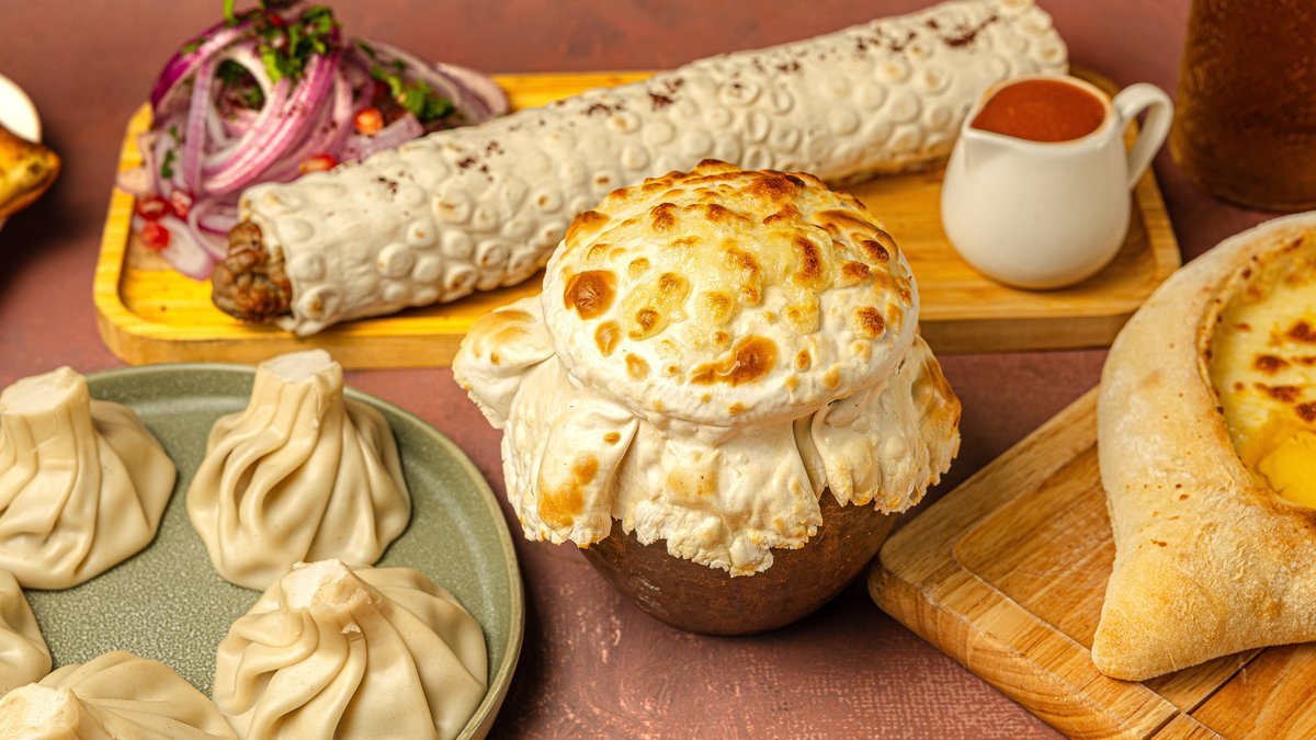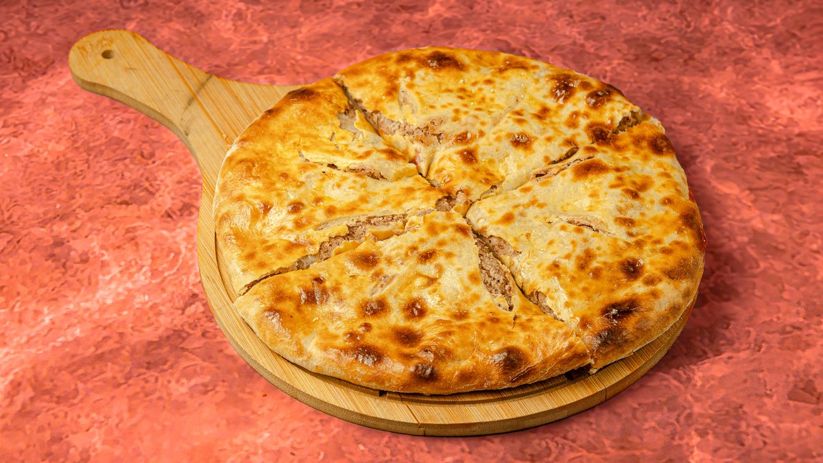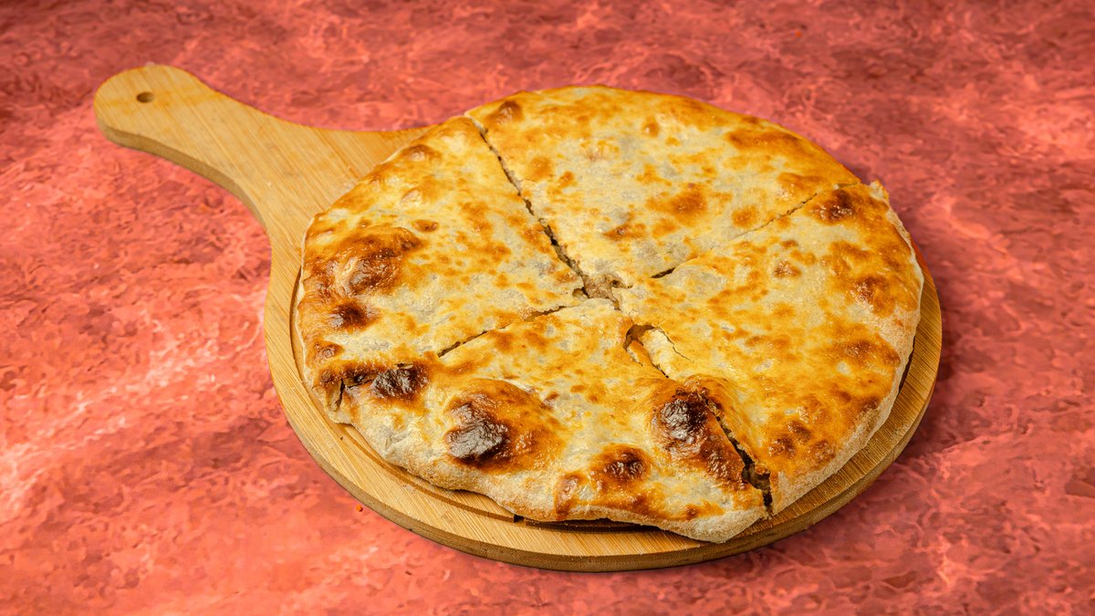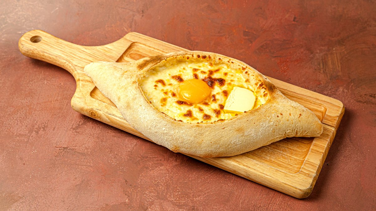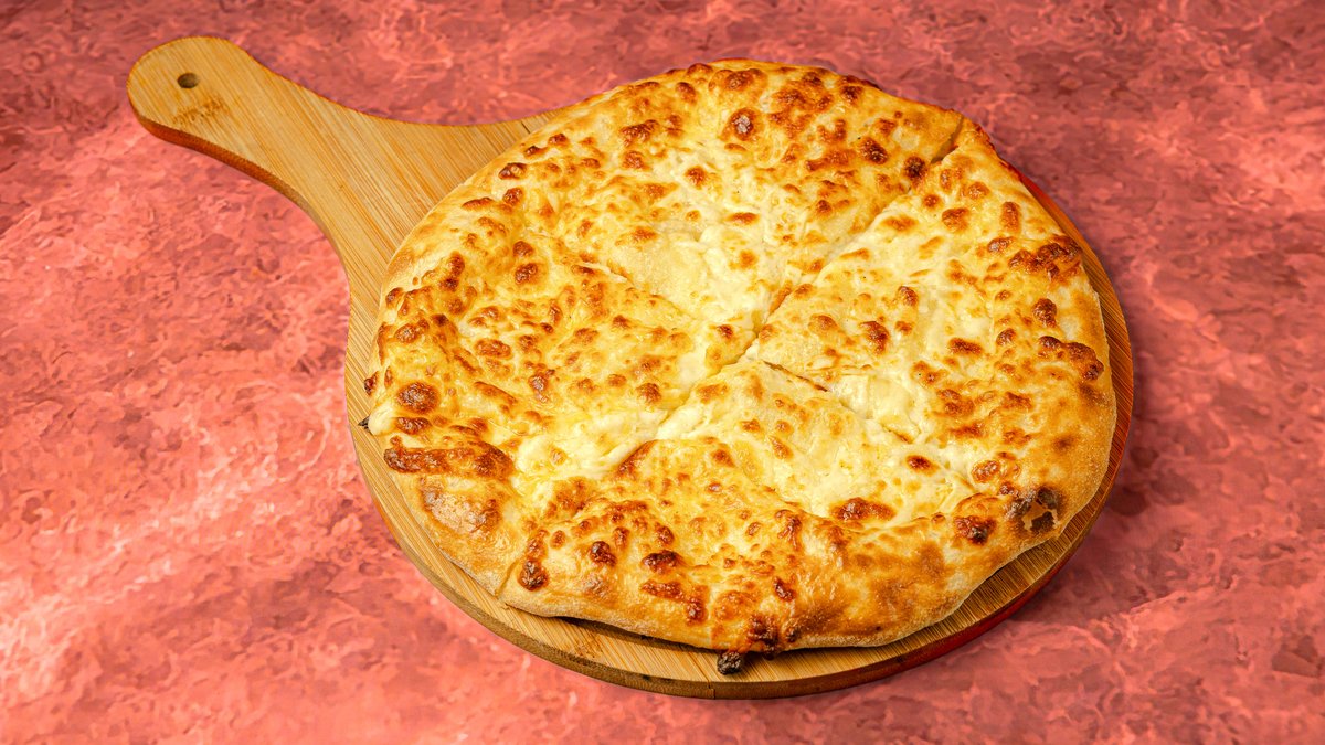 Με παραδοσιακό Γεωργιανό τυρί, μοτσαρέλα, gouda και μπέικον