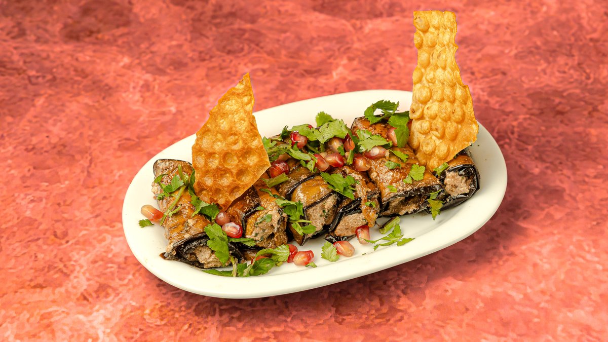 Με ψητή μελιτζάνα, καρύδι και μπαχαρικά
