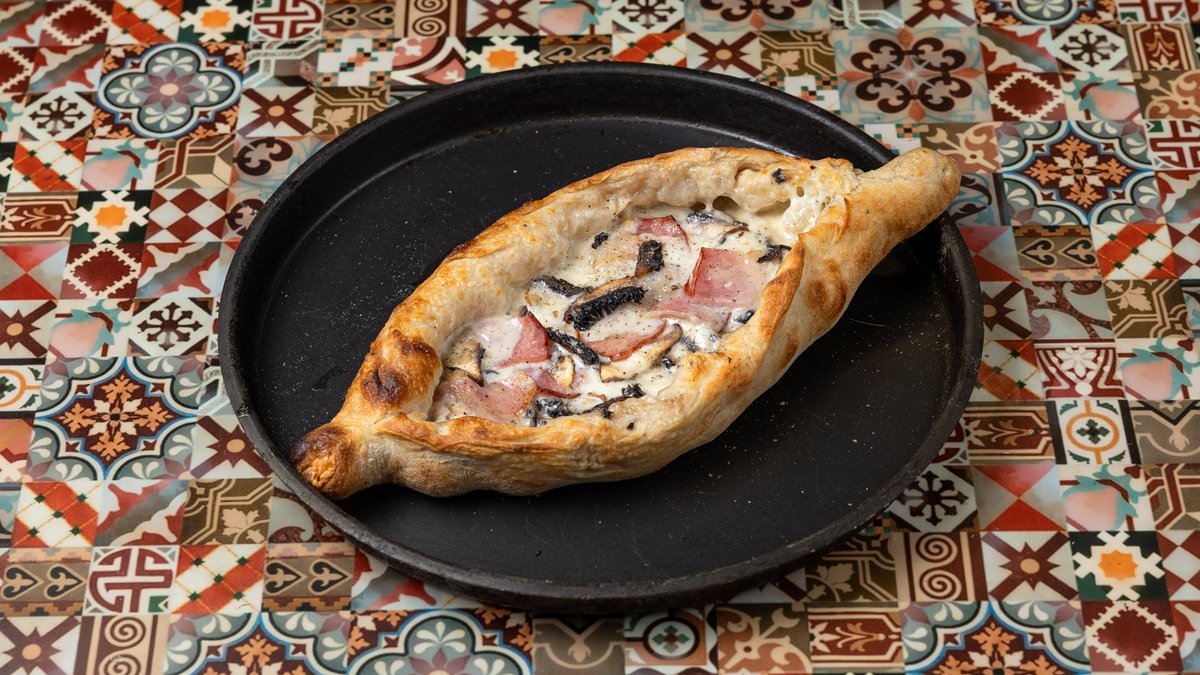 Με mozzarella, κασέρι, κρέμα γάλακτος, bacon, μανιτάρια