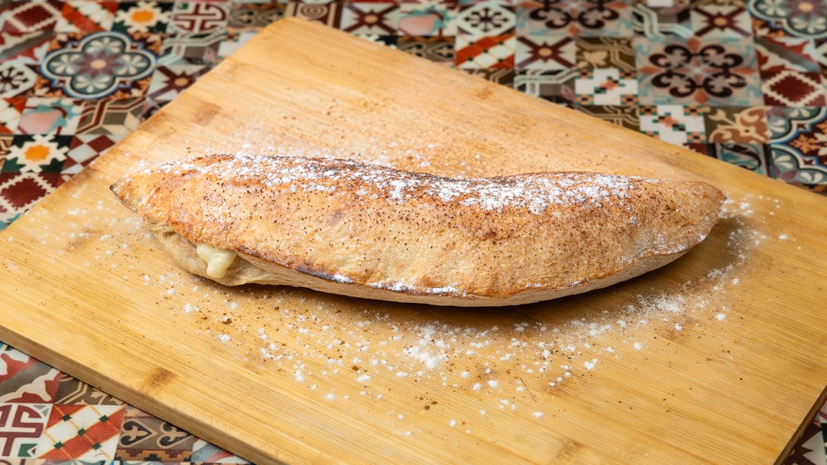 Με κρέμα σιμιγδαλιού, ξύσμα λεμόνι, κανέλα, άχνη