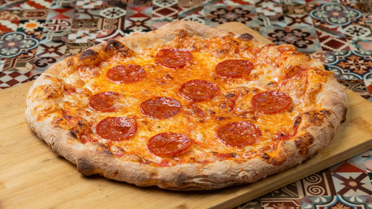 Με mozzarella, σάλτσα ντομάτας, pepperoni