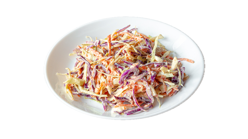 Με λάχανο, καρότο, σέλερυ, κρεμμύδι ξερό, πράσινο μήλο, σπιτική μαγιονέζα, mirin, ρυζόξιδο