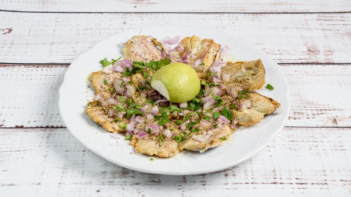 Συνοδεύεται από κρεμμύδι, πιπεριές πολύχρωμες μαϊντανό και ρίγανη