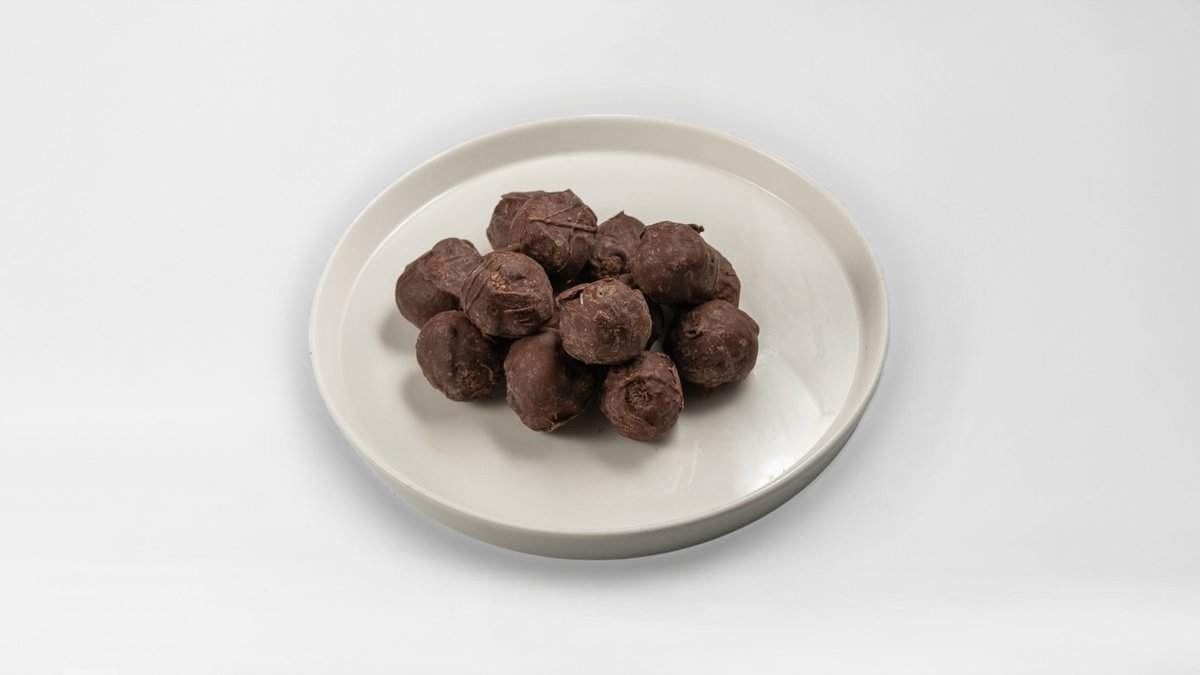 Με αμύγδαλα, αλεύρι καρύδας, μέλι, επικάλυψη μαύρη σοκολάτα
