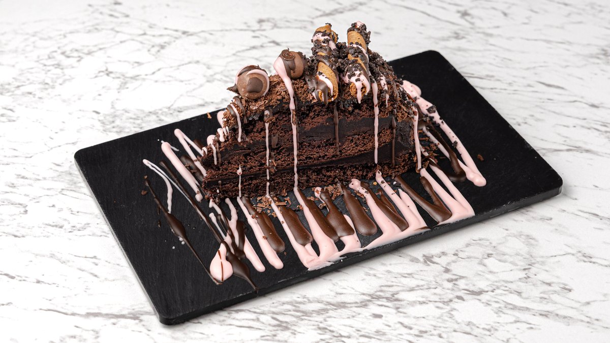 Σοκολατένιο cake με 3 στρώσεις ganache σοκολάτας και επικάλυψη σοκολάτας