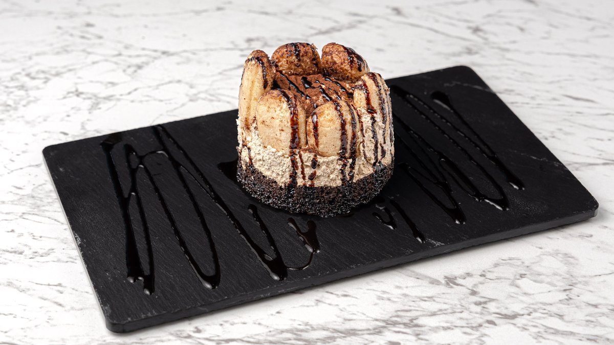Απολαυστική βάση από μπισκότα σαβαγιάρ βρεγμένα με espresso που καλύπτονται με βελούδινη κρέμα από μασκαρπόνε