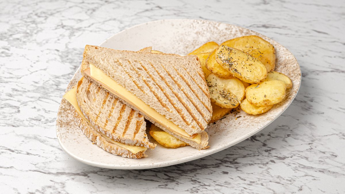 Με φιλέτο κοτόπουλο πανέ, καπνιστή γαλοπούλα fouantre, edam, αυγό τηγανητό, καραμελωμένο μπέικον, ντομάτα, iceberg και αρωματική μαγιονέζα με μουστάρδα και μελί. Συνοδεύεται από πατάτες crunch petals