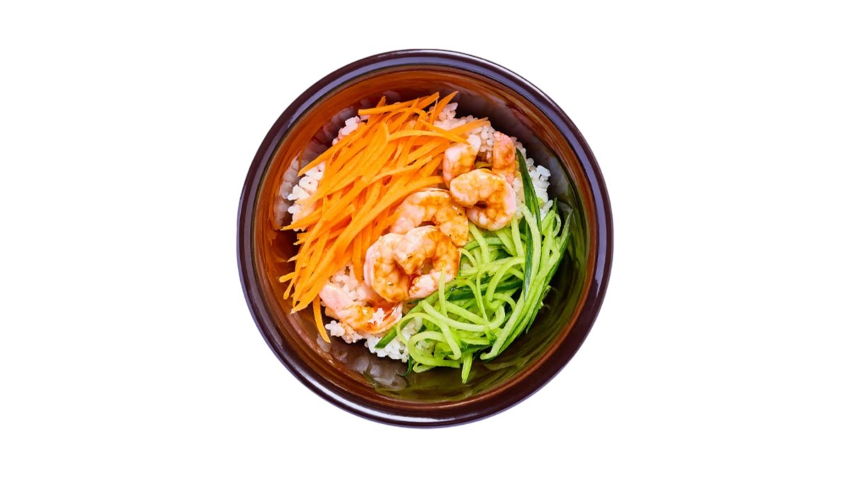 Ρύζι με γαρίδες, καρότο, αγγούρι, γλυκιά σάλτσα