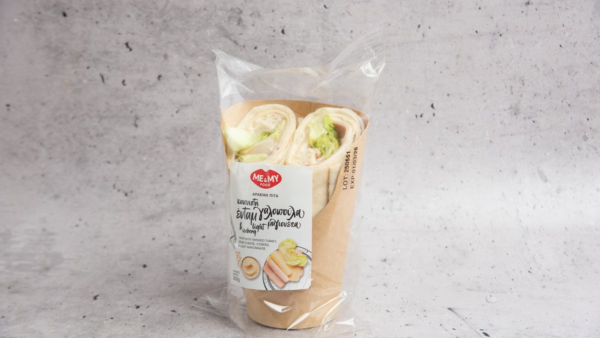 Καπνιστή Γαλοπούλα με Edam Iceberg Μαγιονέζα Light σε Αραβική Πίτα