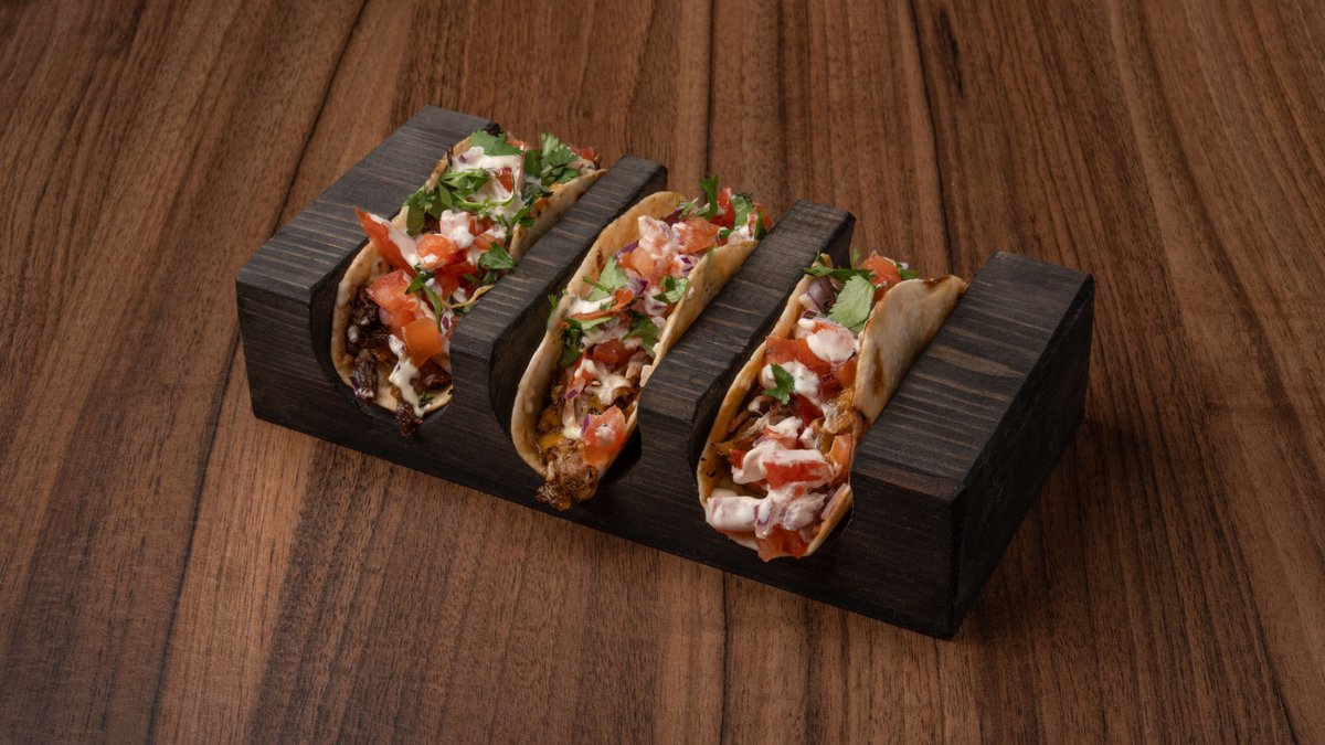 Soft tacos με σιγομαγειρεμένο brisket, cheddar, guacamole, white cream sauce & pico de gallo