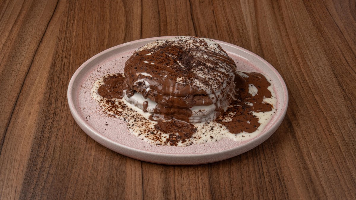 Σοκολατένια pancakes γεμιστά με σταγόνες σοκολάτας, πραλίνα σοκολάτας, λευκή πραλίνα & τριμμένο oreo