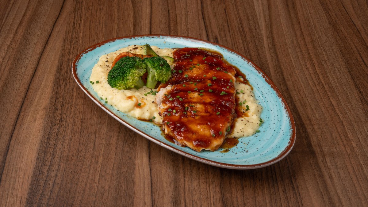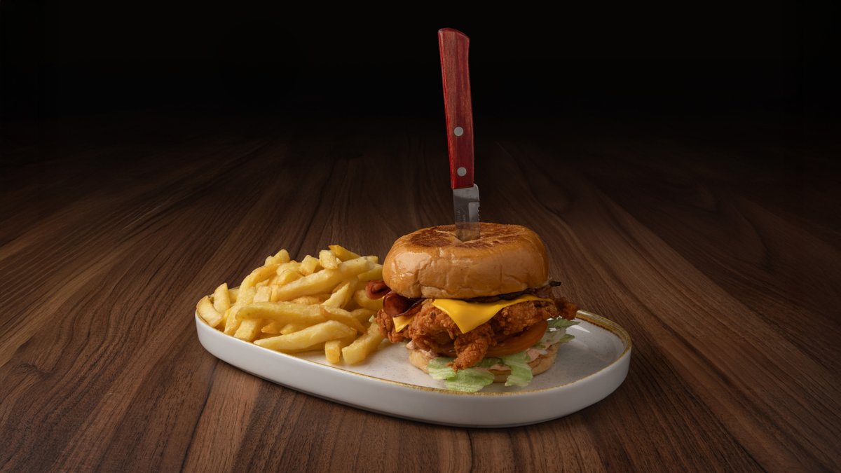 Πολύσπορο ψωμάκι ολικής, φιλέτο κοτόπουλο, αβοκάντο, bacon, γκούντα, ντομάτα, iceberg & Wallstreet sauce. Συνοδεύεται από φρέσκες τηγανητές πατάτες