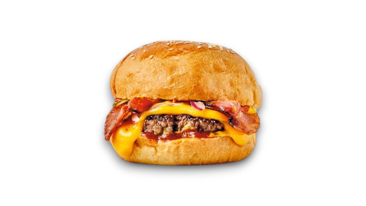 Με μπιφτέκι από 100% μοσχαρίσιο κιμά 180 g, καραμελωμένο κρεμμύδι, μπέικον, μαγιονέζα, bbq sauce και cheddar sauce