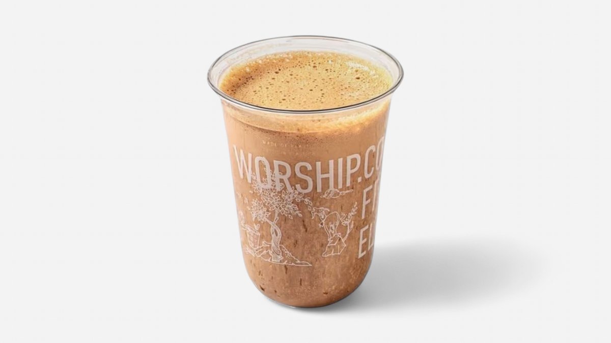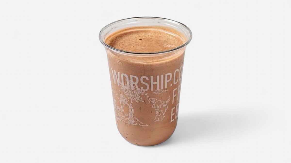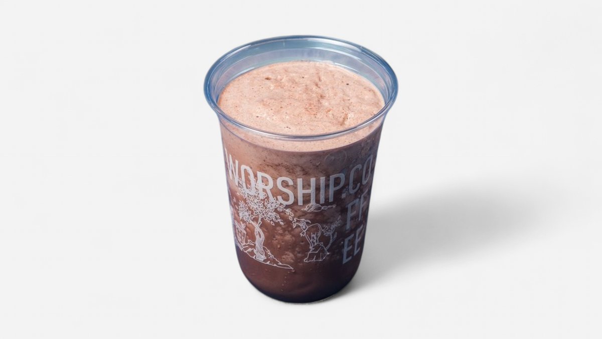 Με γάλα, espresso, καραμέλα, μπανάνα και scoop πρωτεΐνης
