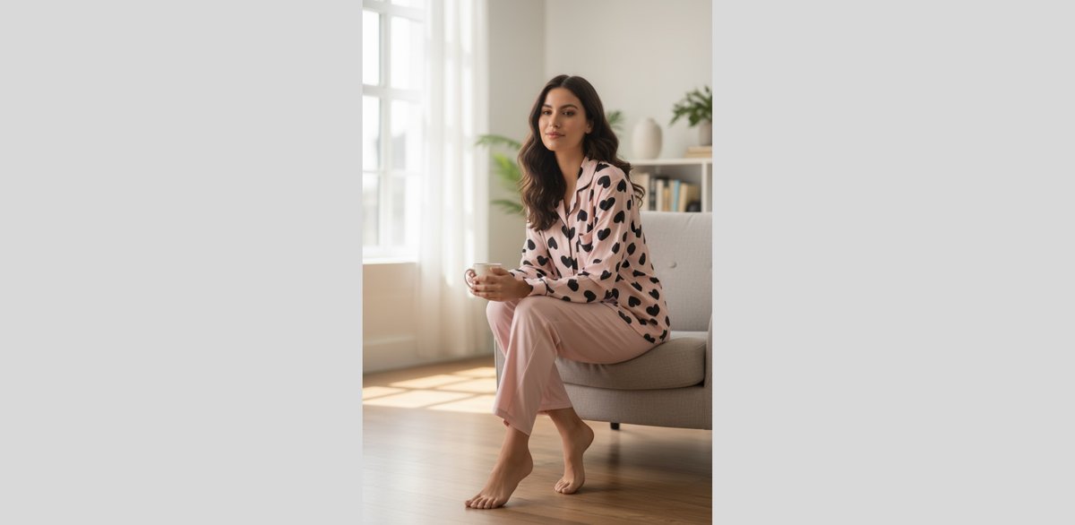 Ροζ πιτζάμα με μαύρες καρδιές