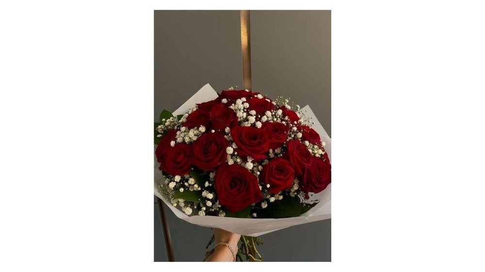 Μπουκέτο σε Ροζ και Μωβ Αποχρώσεις (3 Τριαντάφυλλα-Λυσίανθος-Αλστρομέρια-Γυψοφύλλη-Πρασινάδα)